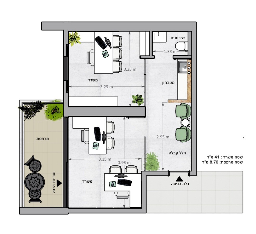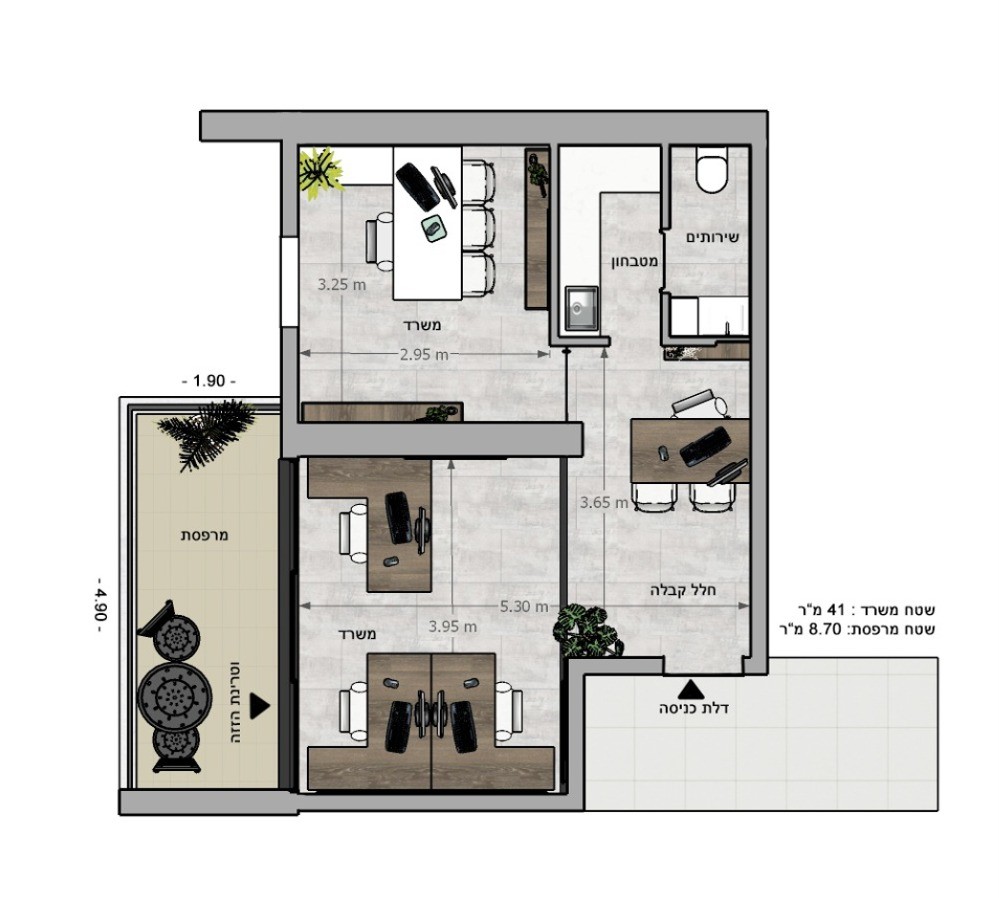 ✅ 41 מ”ר משרד + 9 מ”ר מרפסת